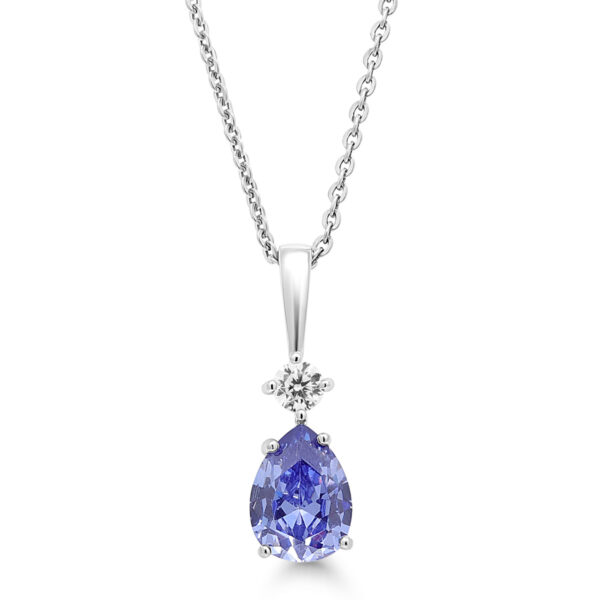 14K valkokultainen sydänriipus jalokivillä