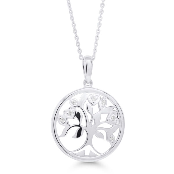 14K valkokultainen sydänriipus rodoliiteilla ja timanteilla