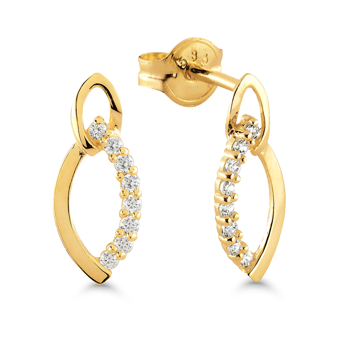 Tyylikkäät kultakorvakorut zirkoneilla