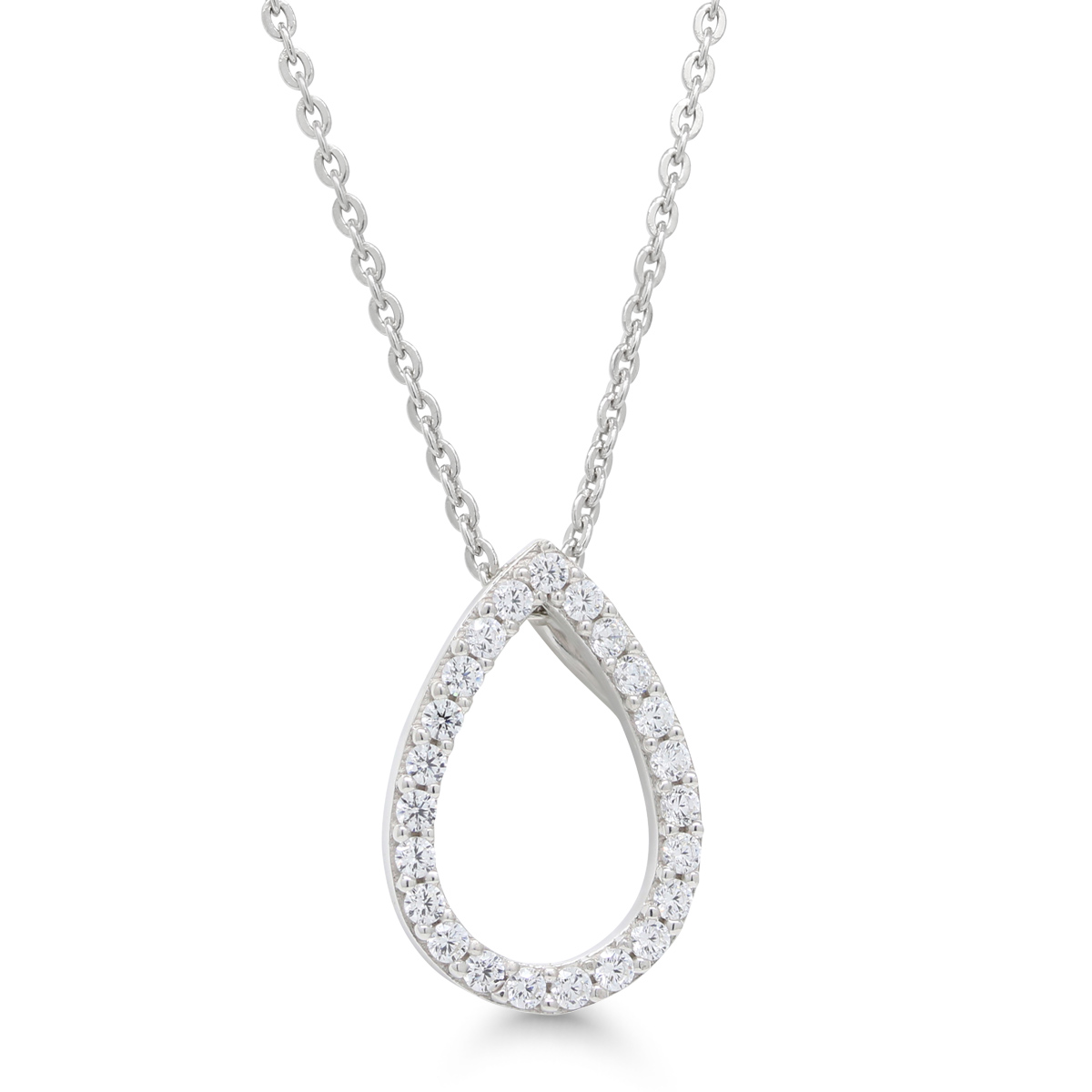 Avoin pisara hopeakaulakoru zirkoneilla, 40-45cm ketju.