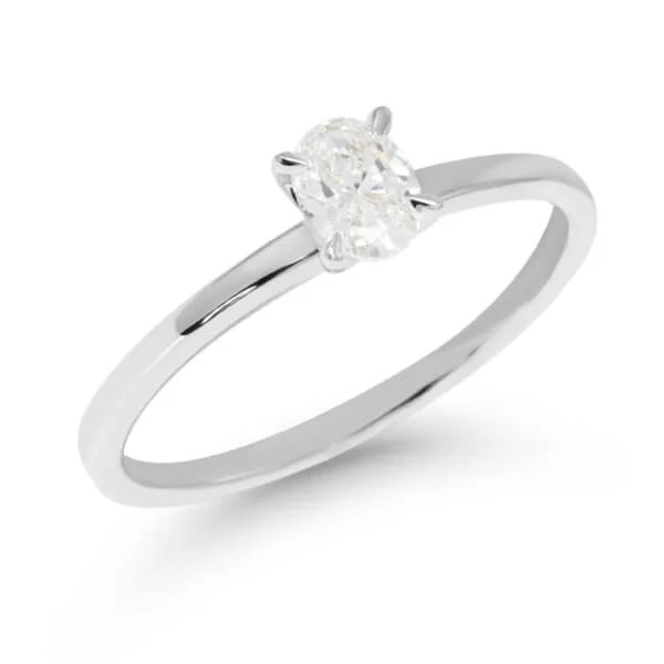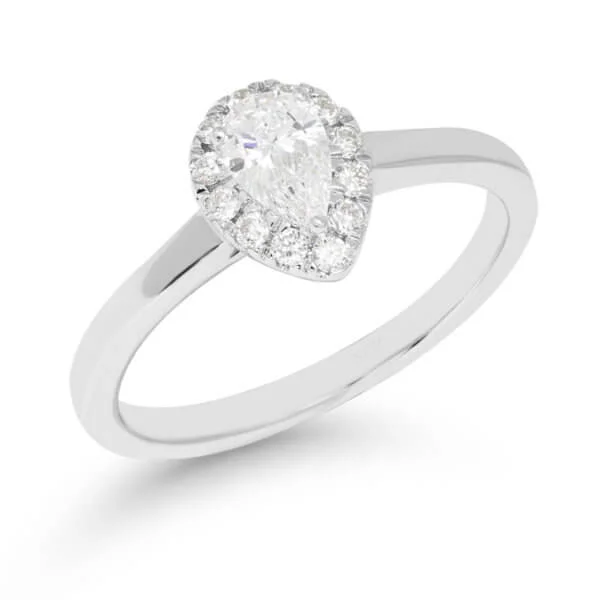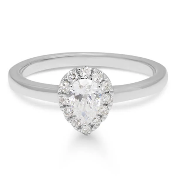 Yksinkertaisen tyylikäs ja siro valkokultainen timanttisormus pisaran muotoisella 0.50ct laboratoriotimantilla. Kapea 1,8mm runko korostaa timantin kokoa ja näyttää todella hyvältä. Timanttisormus on suunniteltu niin, että sen viereen sopii saumattomasti kihlasormus tai timanttirivisormus.