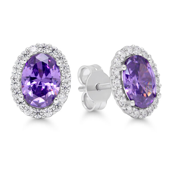 Beat of Love hopeakaulakoru ovaali halo ametistin värisellä ja kirkkailla zirkoneilla