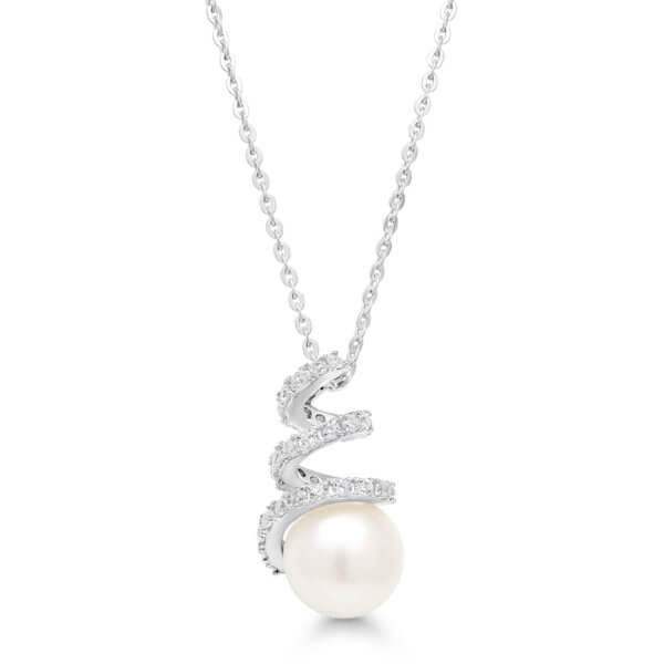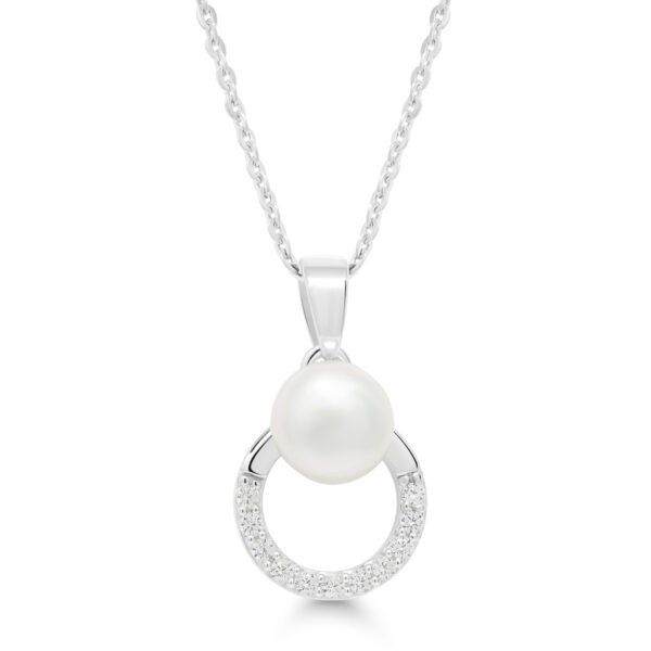 Beat of Love -hopeinen helmikaulakoru zirkoneilla, roikkuvat halo malli