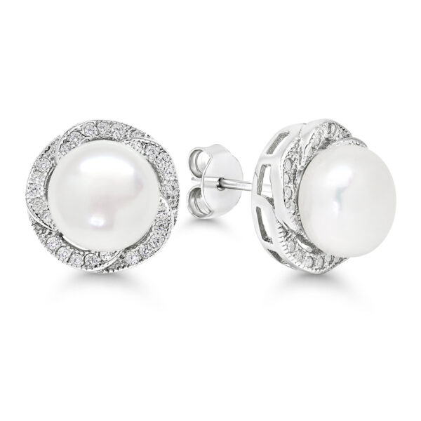 Beat of Love -hopeiset helmikorvakorut zirkoneilla, halo malli. Kaunis makeanveden helmi istuu halon yläpuolella. Sopii päivittäiseen käyttöön.
