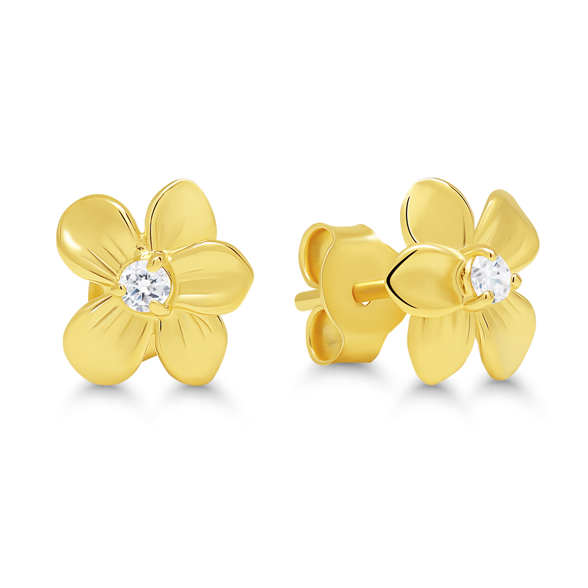 Beat of Love – kullatut kukka hopeakorvakorut zirkoneilla.