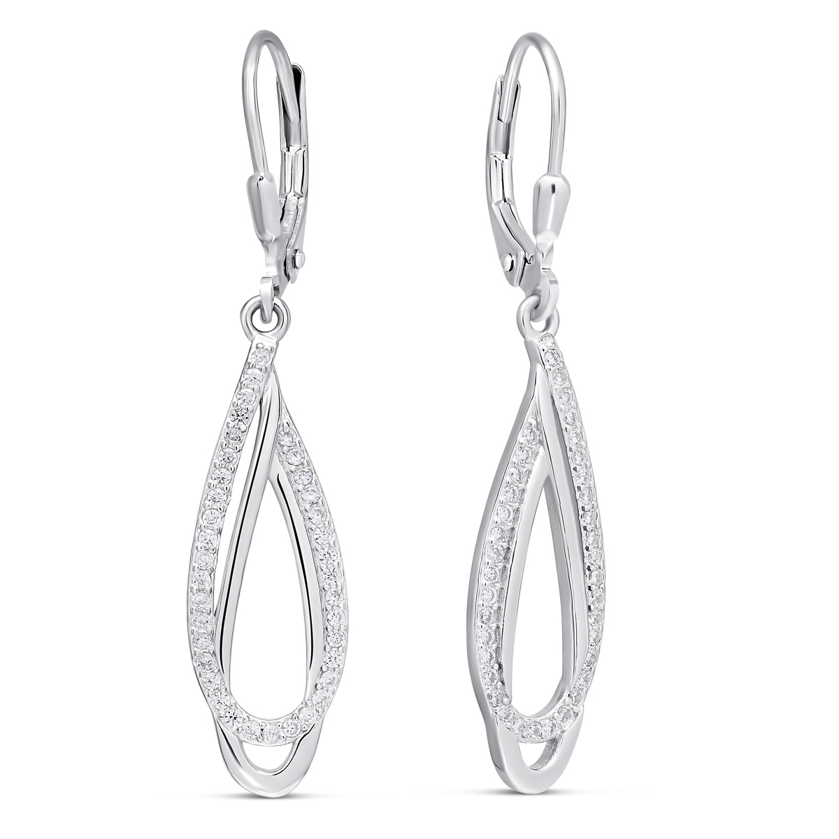 Kauniit zirkonein koristellut avonaiset roikkuvat hopeakorvakorut.