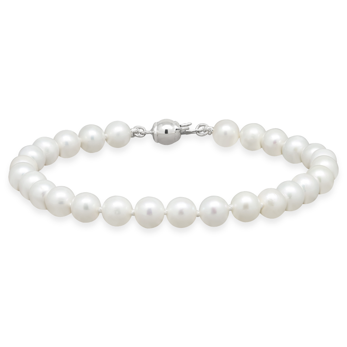 Helmiranne 6-6½mm AAA valkoinen hopealukolla