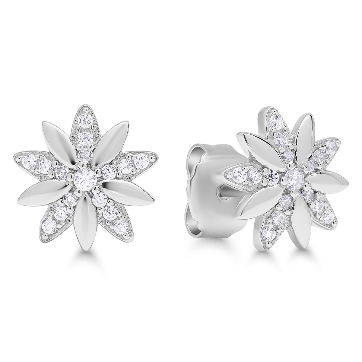 Hopeakorvakorut kukka kirkkailla zirkonikivillä.