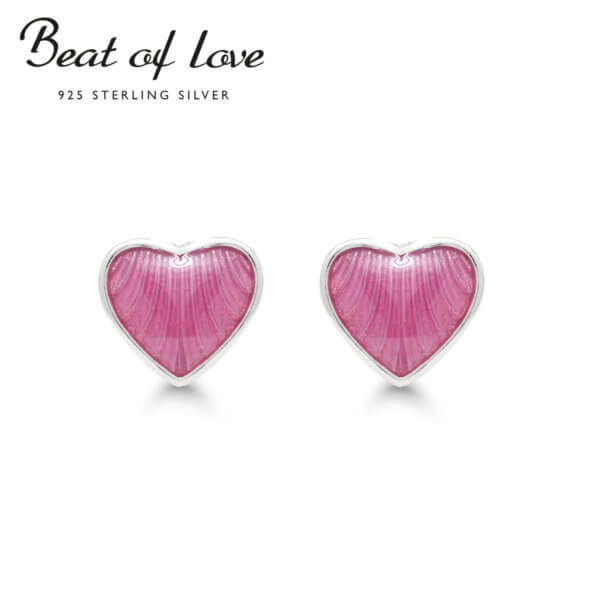 Hopeakorvakorut pinkki emaloitu sydän zirkoneilla