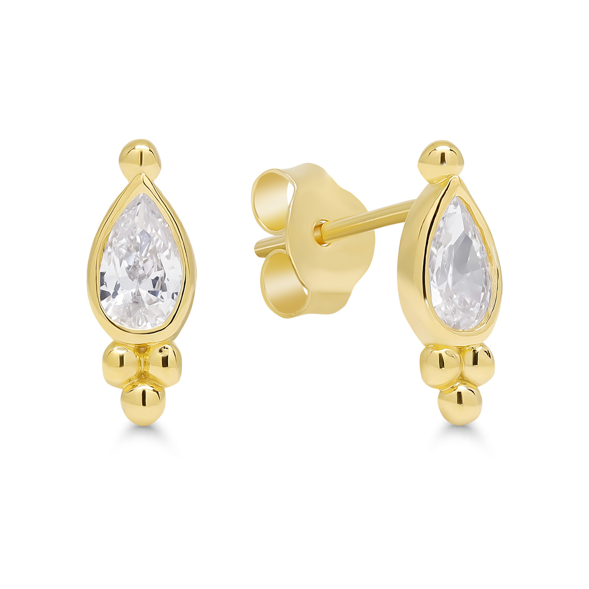 Hopeakorvakorut pisarat pienellä kirkkaalla zirkonilla kullattu
