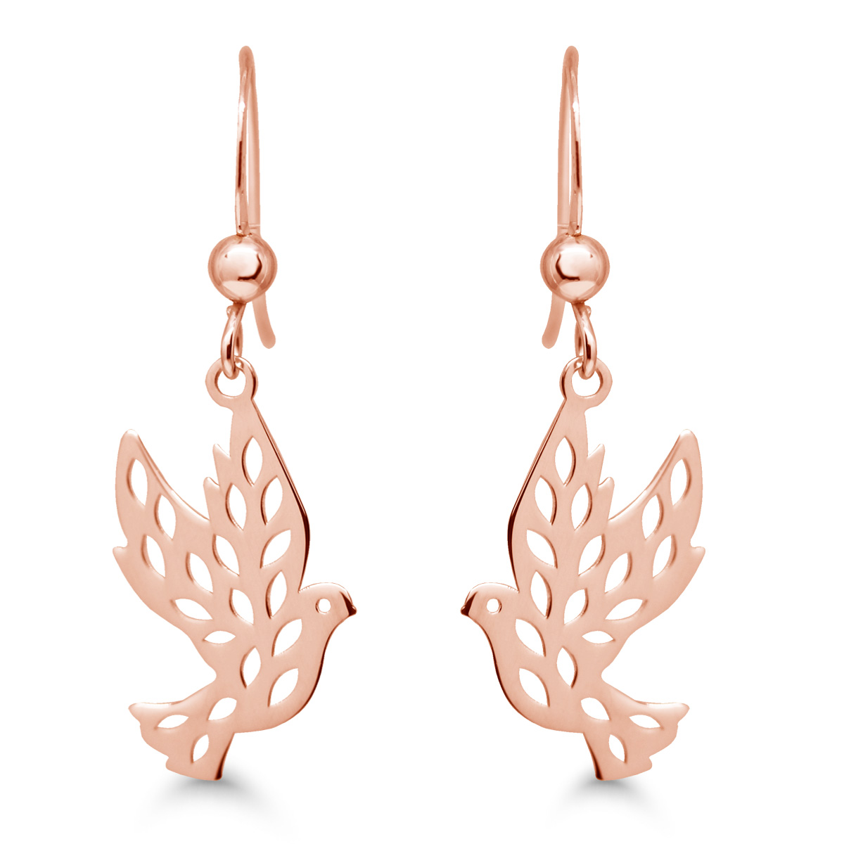 Roikkuvat rauhankyyhky korvakorut ruusukullattua hopeaa.