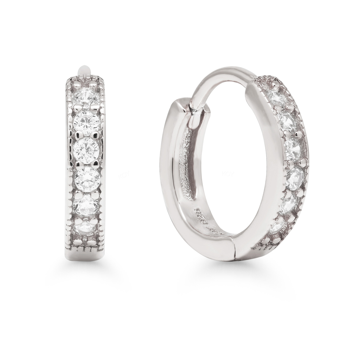 Siron pienet saranalliset hopeakorvarenkaat kirkkailla kivillä ja koristereunalla.
