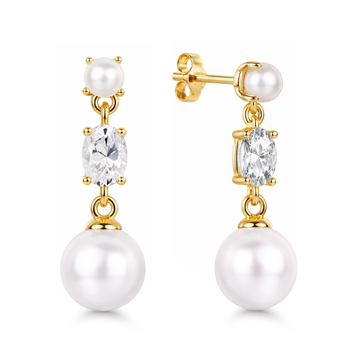 Hopeakorvakorut zirkoneilla ja helmiäishelmillä kullattu