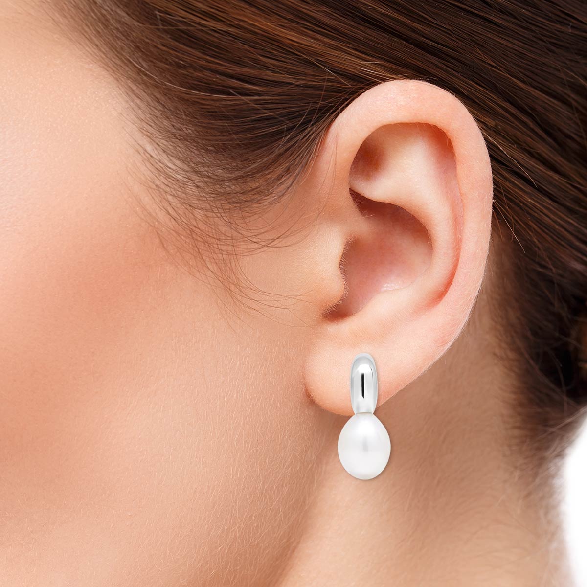 Hopeiset rengaskorvakorut makeanveden helmillä ja tappikiinnityksellä.