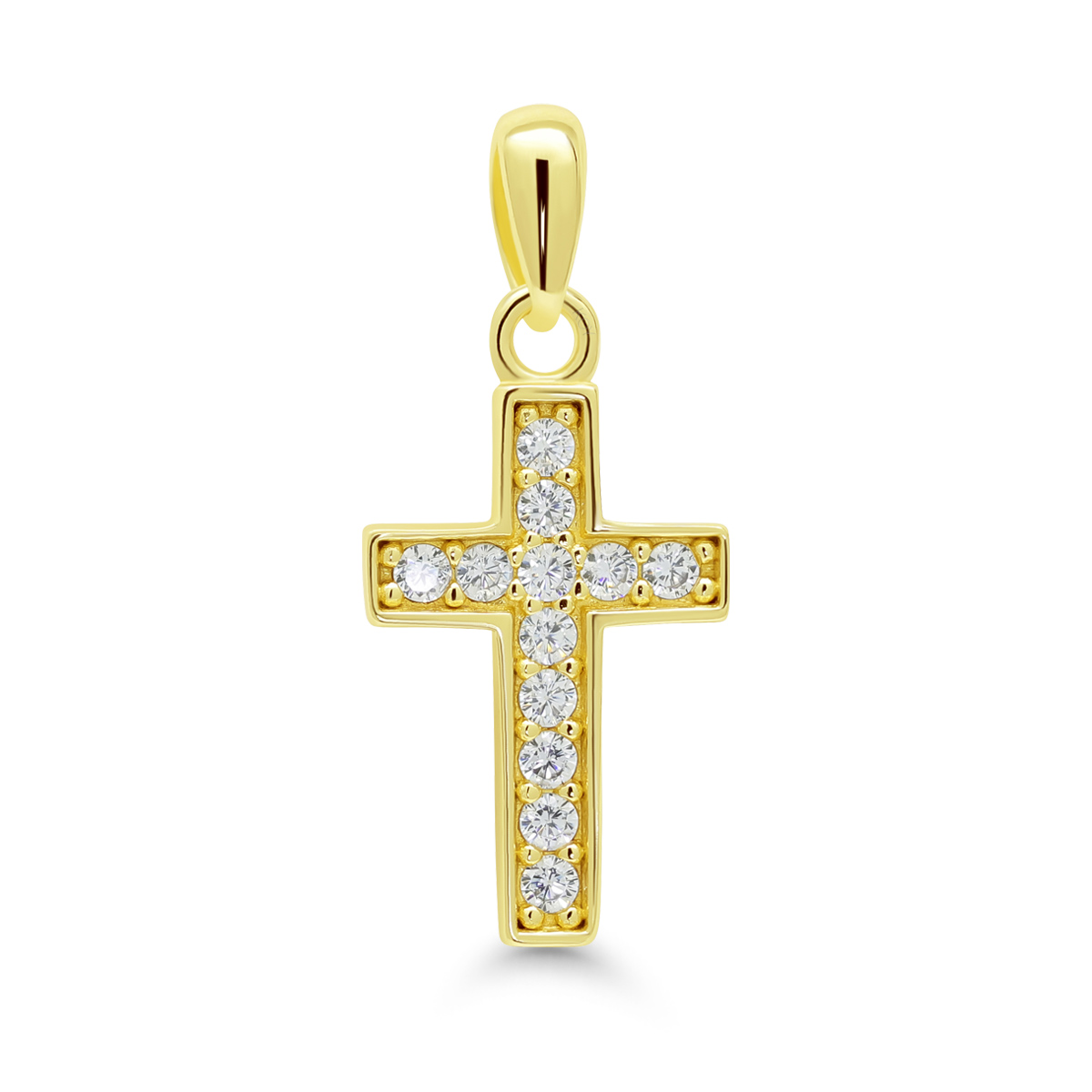 Hopeinen kullattu ristiriipus zirkon kivillä