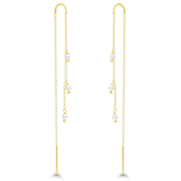 Tyylikkäät ja naiselliset kullatut hopea helmikorvakorut roikkuvilla ketjuilla.