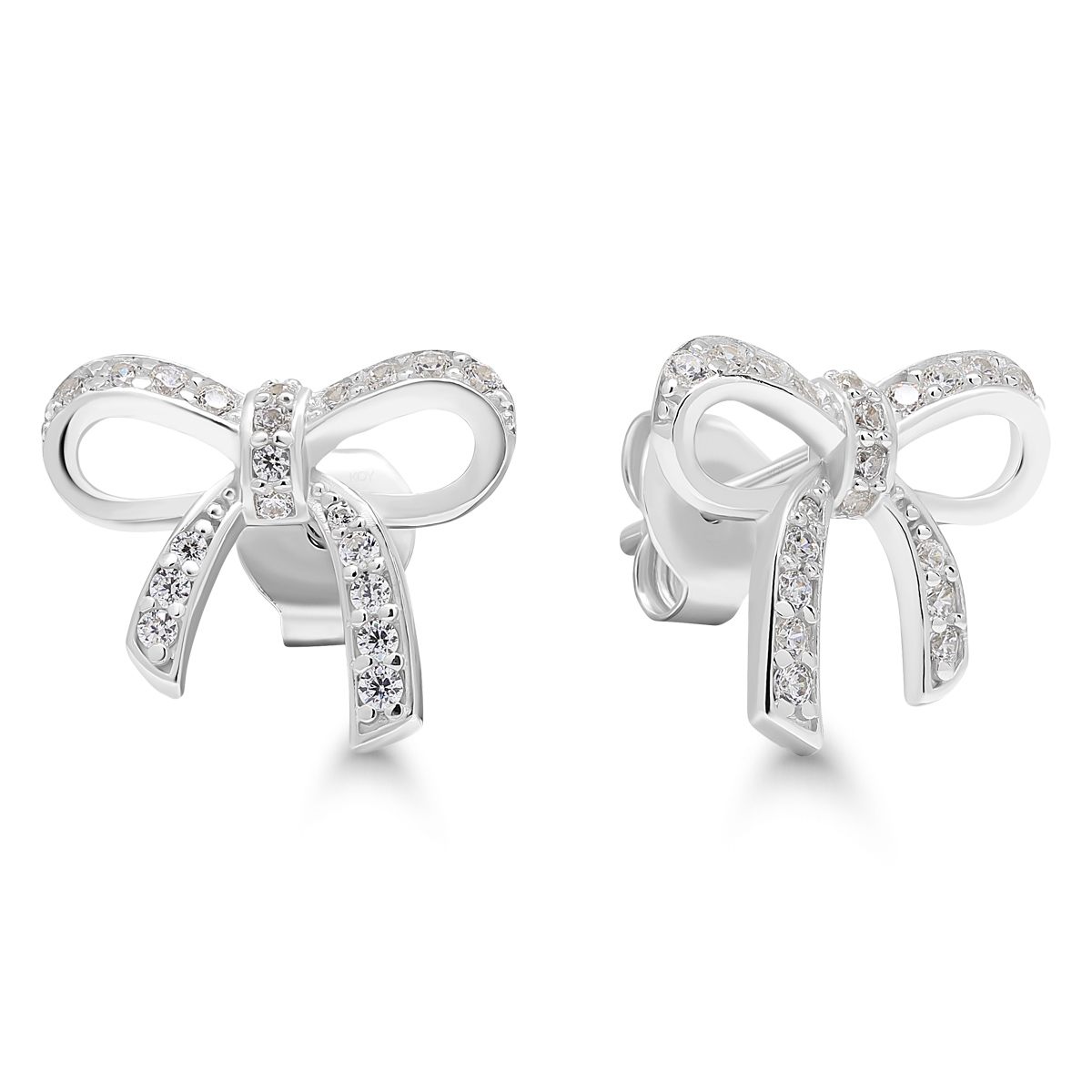 Hopeiset rusettikorvakorut synteettisillä zirkoneilla