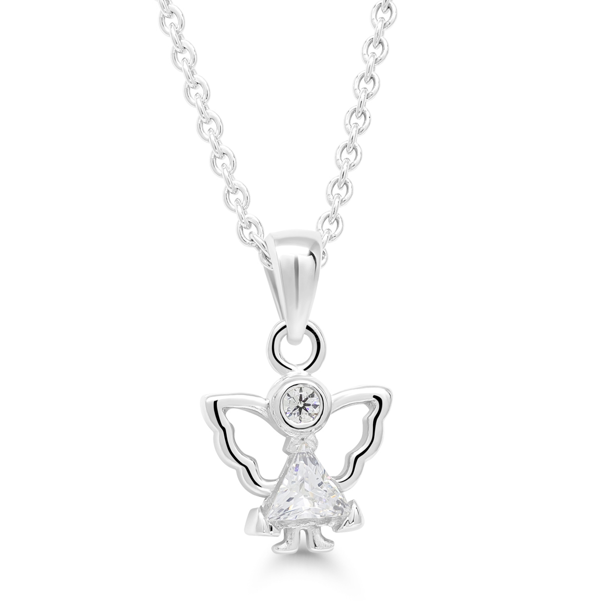 Kaunis lasten hopeinen enkeliriipus zirkoneilla 36-40cm.
