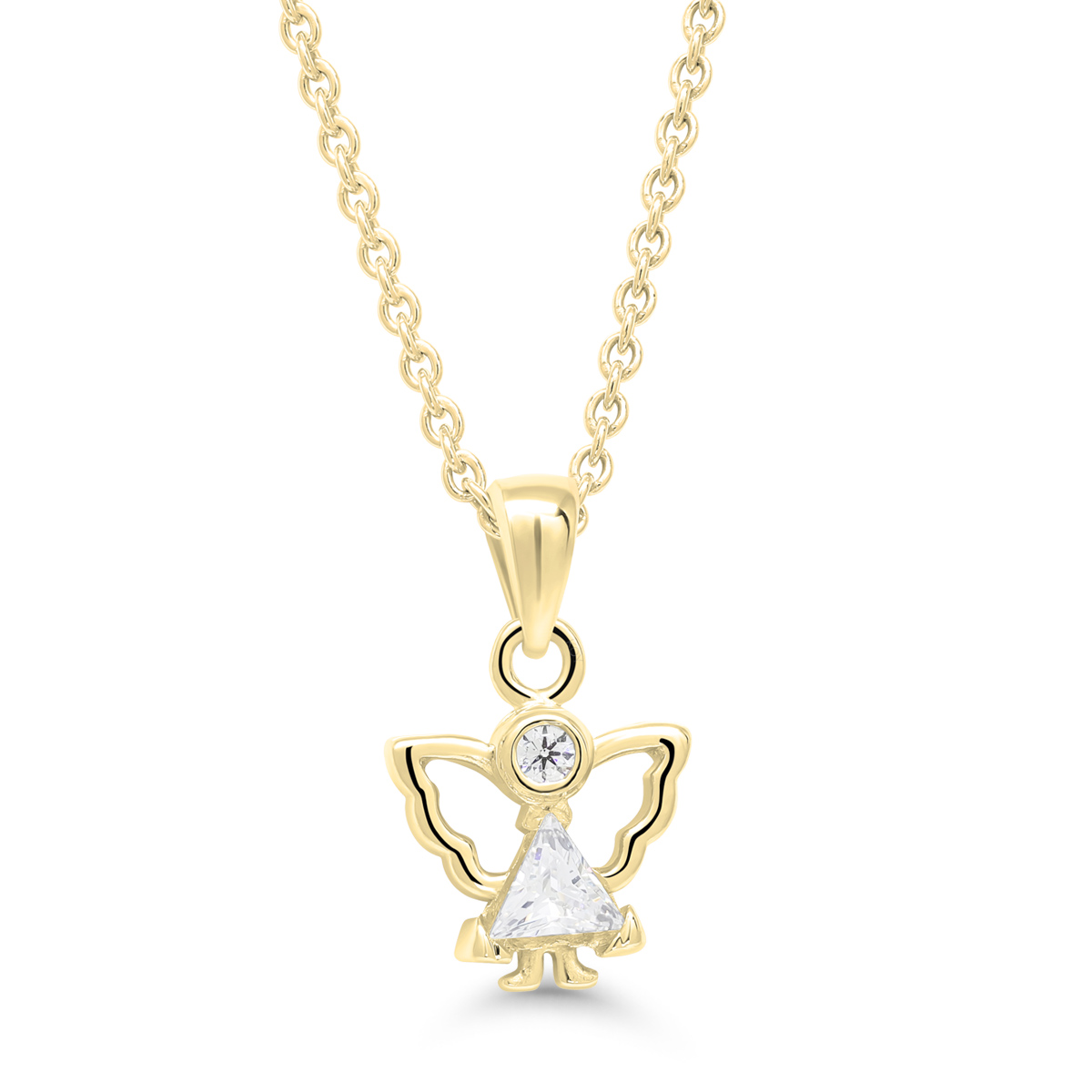 Kaunis lasten kullattu hopeinen enkeliriipus zirkoneilla 36-40cm.