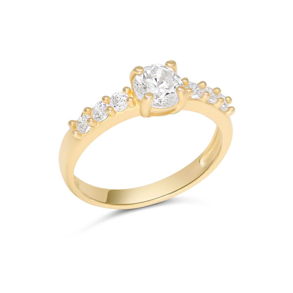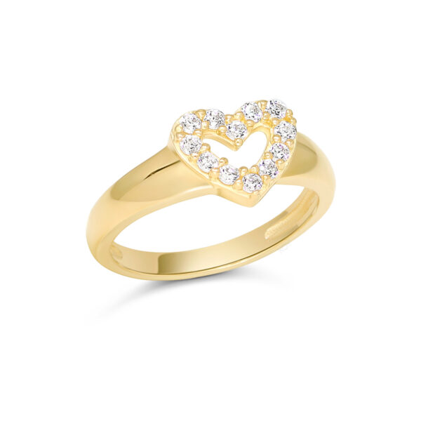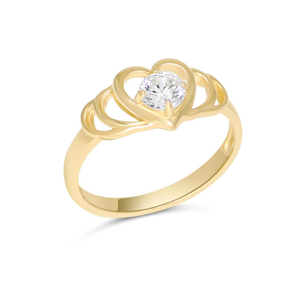Kaunis sydämenmuotoinen kultainen kastesormus zirkonilla