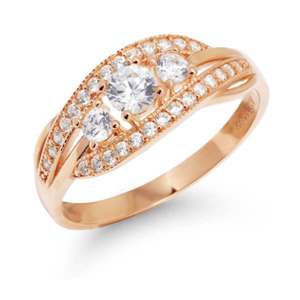 Keltakultainen koristeellinen sormus zirkoneilla