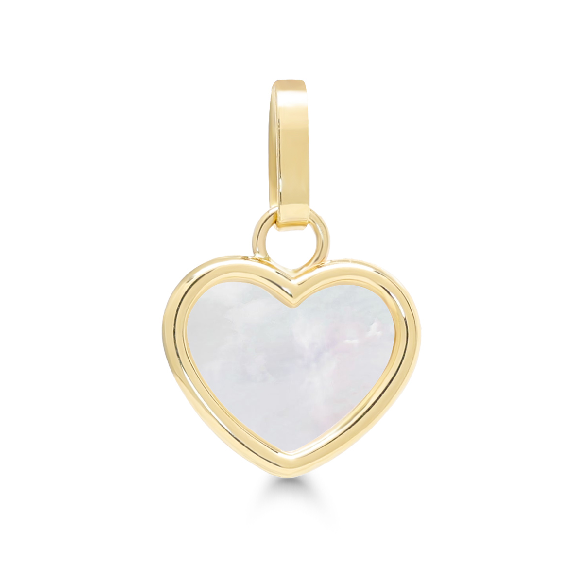 Kaunis sydämenmuotoinen keltakultariipus helmiäisellä.