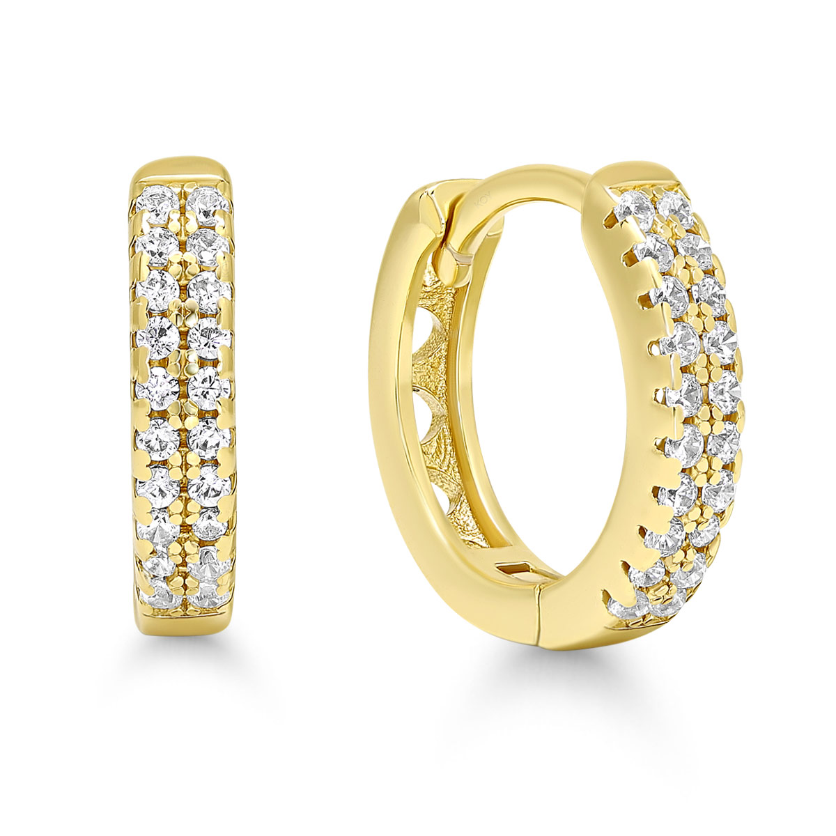 Saranalliset kullatut hopeakorvarenkaat, zirkonit kahdessa rivissä.