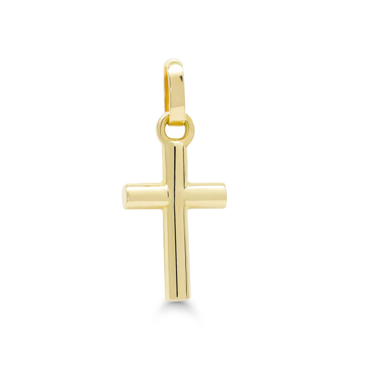 Keltakultainen kiiltävä ristiriipus. Sopii hyvin rippiristiksi pojalle tai tytölle.