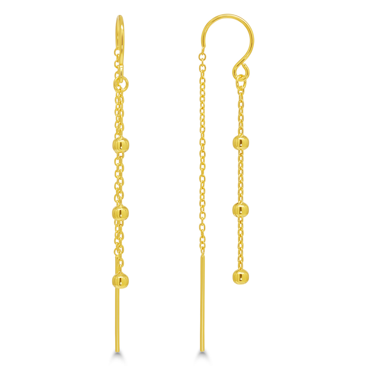 Läpivedettävät kullatut hopea ketjukorvakorut helmi koristeilla. U-muotoisen kiinteän kohdan takia istuu kivasti korvassa ja pysyy paikalla.