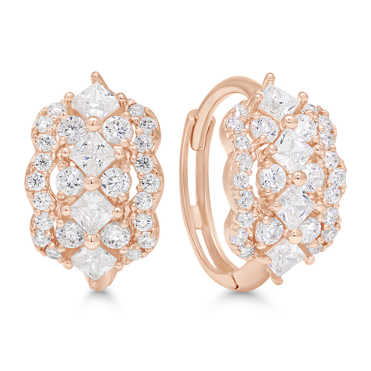 Näyttävät ja kauniisti säihkyvät punakultaiset saranakorvarenkaat kirkkailla zirkoneilla.