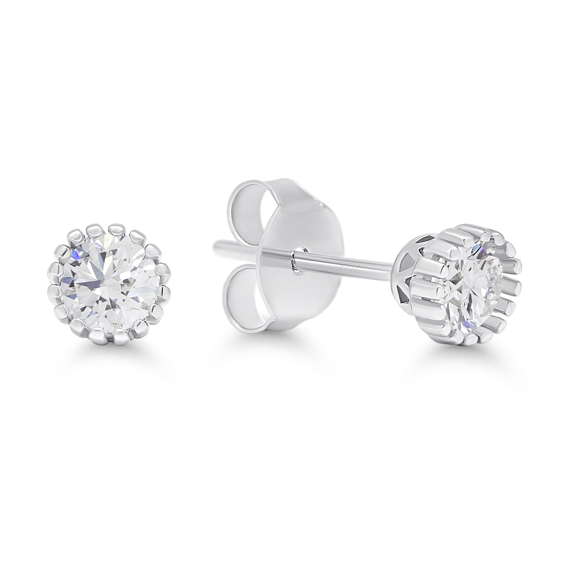 Pyöreät hopeakorvakorut, joissa on krysanttireuna ja kirkkaat zirkonikivet.