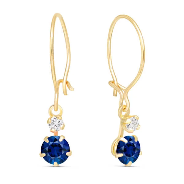 Roikkuvat kultakorvakorut 14k keltakultaa ametistin värisillä ja kirkkailla zirkoneilla. Lukollinen tukeva mekanismi takaa, että korvakorut eivät pääse tippumaan.