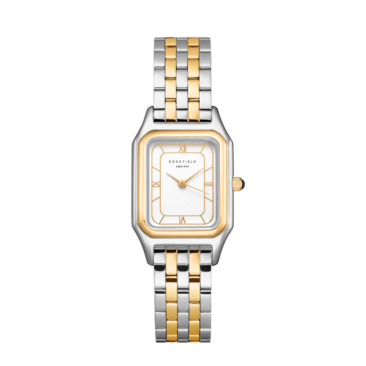 Rosefield Ivy malliston naisten rannekello 8-kulmaisella kellotaululla ja kaksivärisellä rannekkeella. Siro ja tyylikäs kello naiselle. Roomalaiset numerot.