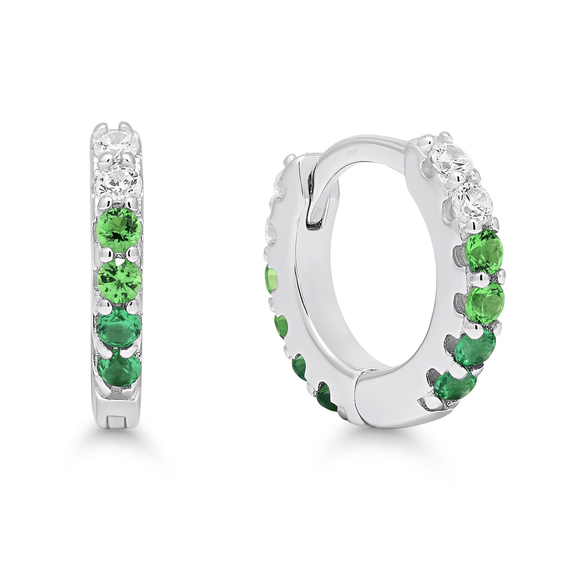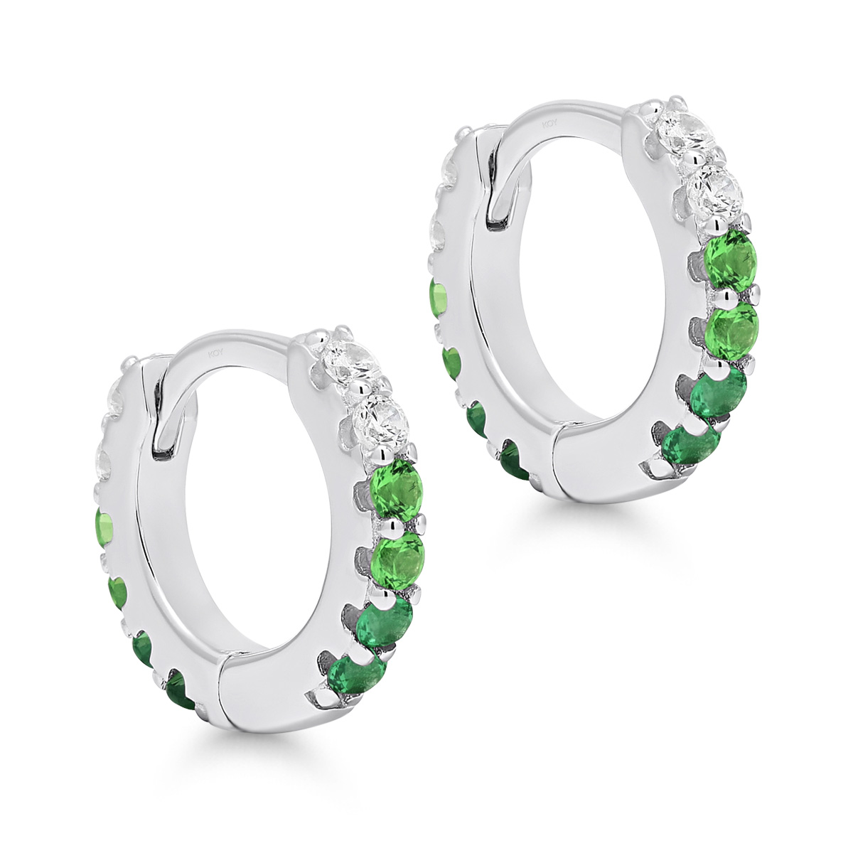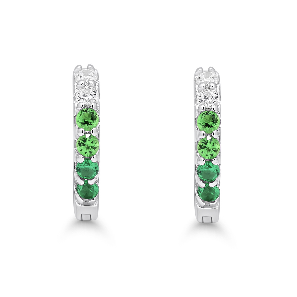 Saranalliset hopeakorvarenkaat vihreillä zirkoneilla