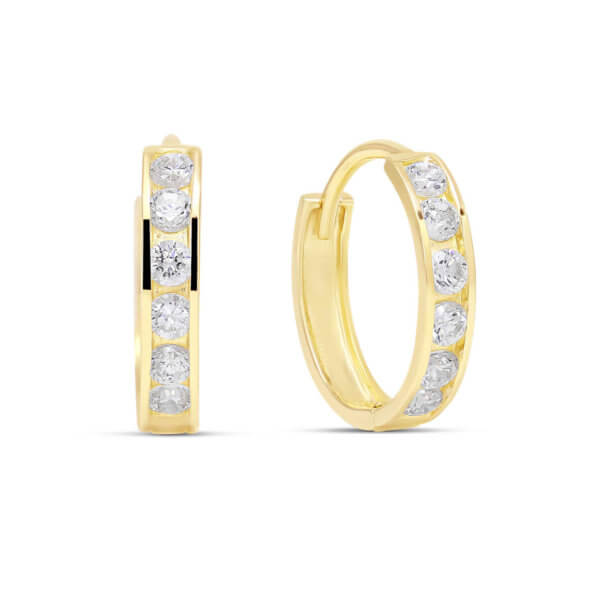 Saranalliset keltakultakorvarenkaat zirkoneilla